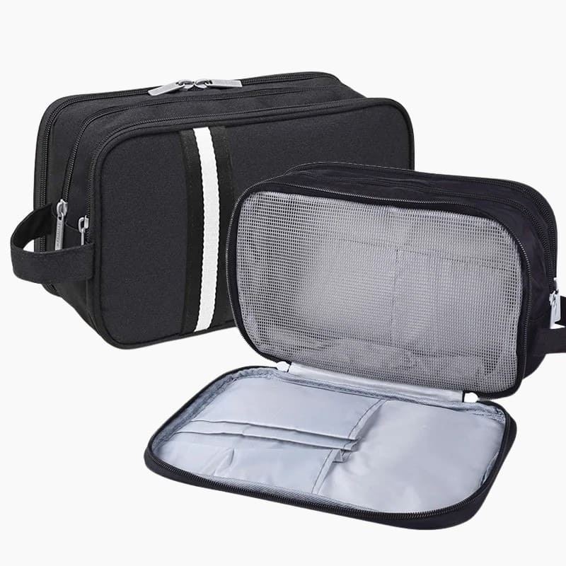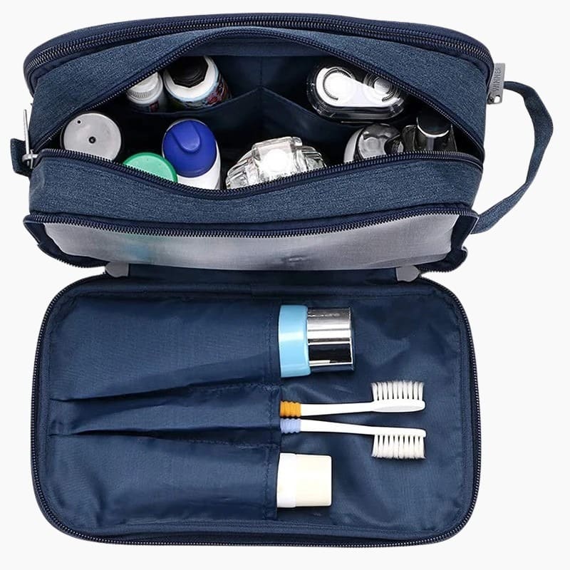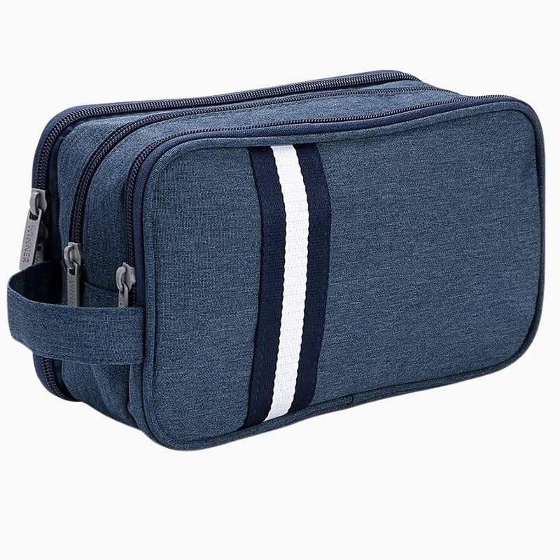 Der Kulturbeutel her ren ist aus hochwertigem Polyester gefertigt und ist sehr strapazierfähig und stoßfest, wenn Sie unterwegs sind. Aber nicht nur das: Er ist vollständig wasserabweisend und kann ohne Bedenken in einem feuchten Raum bleiben, ohne Wasserschäden befürchten zu müssen. Die Reißverschlüsse sorgen nicht nur für Sicherheit, sondern erleichtern auch den Zugriff auf den Inhalt.